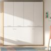 Cama abatible horizontal con armario superior, hueco de estanterías y práctico escritorio incorporado.