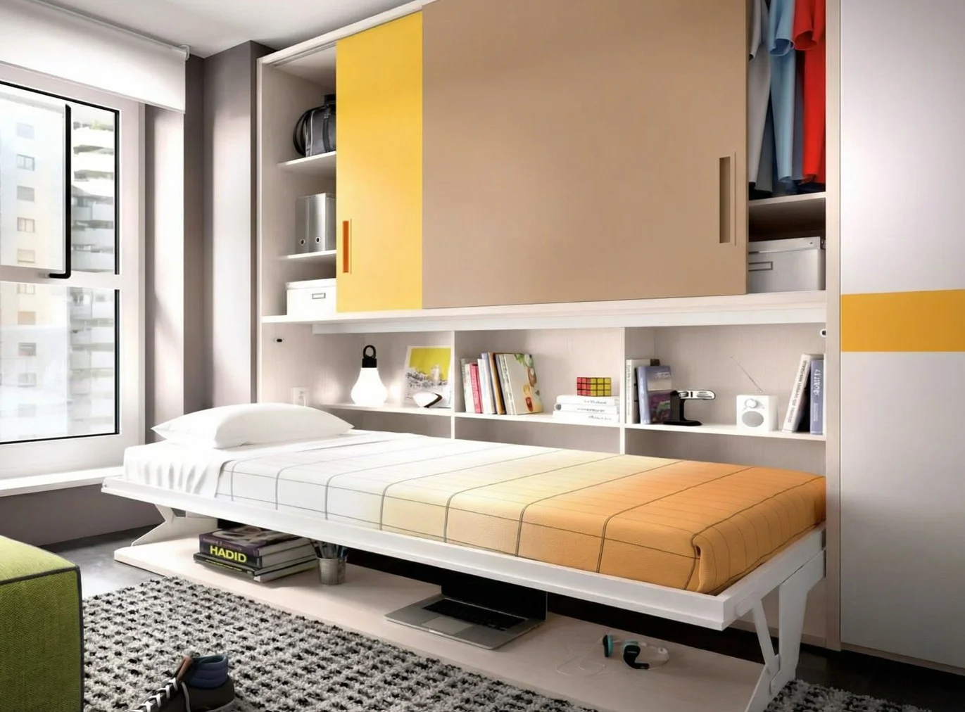 Cama abatible con escritorio y armario
