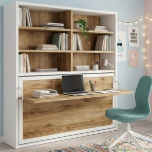 Esta cama abatible con librería y mesa de estudio integrada es ideal para optimizar metros cuadrados en pisos y apartamentos de Badalona y Barcelona.