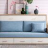 Cama abatible con sofá incorporado de excelente calidad y acabados,con somier de láminas interior,apertura fácil y segura,con cinchas sujetacolchón,bloqueo de seguridad,patas regulables y combo con sistema de retención.Admite colchón de 26 cms de altura.Diferentes opciones de color.