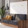 Cama abatible de matrimonio con sofá incorporado y cajones inferiores con guías metálicas,para colchón de 135×190,con somier de láminas interior,pistones hidrahúlicos y diferentes opciones de color a elegir.