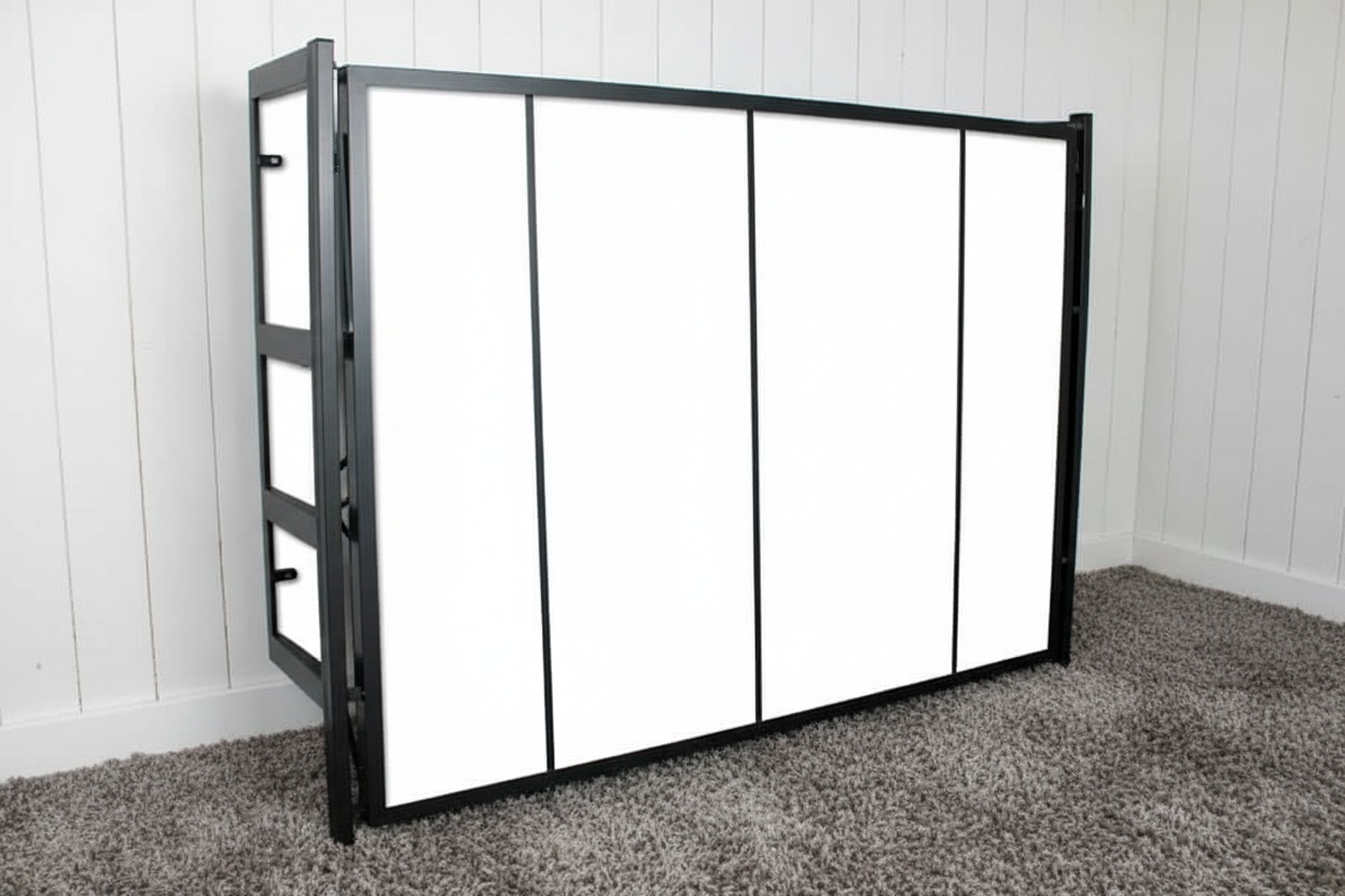 CAMA ABATIBLE DE APERTURA HORIZONTAL CON SISTEMA DE APERTURA CON SISTEMA HIDRAHÚLICO PARA COLCHÓN DE 135X190,ESTRUCTURA METÁLICA EN COLOR GRIS, BLANCO O NEGRO, FRONTAL EN DIFERENTES OPCIONES DE COLOR.ESTRUCTURA DE HIERRO DE 60X30,PATAS DE APOYO AL ABRIR,CON 3 BARRAS DE ACERO DE REFUERZO SOBRE EL TABLERO.Medidas:ancho 207,alto 145 ,fondo 35 y 145 abierta.Los amortiguadores de gas aseguran un descenso lento y seguro, permitiendo cerrar las camas sin mayor esfuerzo.Dispone de un seguro anticierre que garantiza que la cama no se cierre nunca por accidente.
