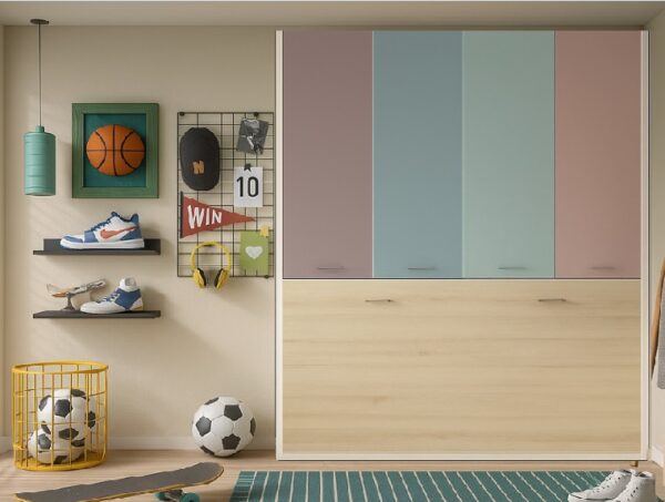 La cama abatible horizontal WIN es la solución perfecta para optimizar espacios reducidos sin renunciar a la comodidad. Ideal para habitaciones juveniles, estudios o apartamentos pequeños, su diseño abatible en horizontal permite un uso práctico y eficiente del espacio.