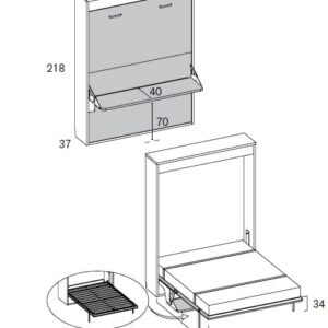 Espectacular oferta de cama abatible con escritorio incorporado para colchón de 135×190, con acabados de 1ª calidad y excelente fabricación, con somier de láminas, cinchas sujetacolchón, salvacolchón metálico, patas regulables con apertura y bloqueo automático y amortiguadores con retención. Opción de luz led. Amplia gama de colores a escoger. Precio correspondiente para colchón de 135×190 (no incluído).Oferta para la medida de 155 de ancho x 220 de alto x 37 de fondo,abierta ocupa 206 cms