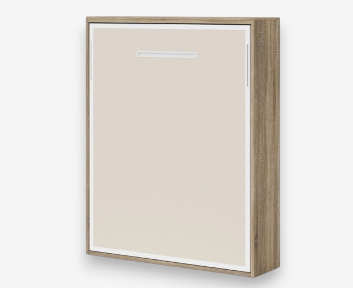 Cama abatible vertical con apertura de patas sincronizadas.MEDIDAS PARA COLCHON DE 135: 152 DE ANCHO, FONDO ESTANDO CERRADA 50 Y 219 ESTANDO ABIERTA, sistema abatible con pistones .Con rebaje en rodapié para un ajuste perfecto a la pared.