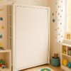 Cama abatible vertical de 90×190 con somier de láminas interior,prácticos estantes interiores,con rebaje de zócalo y cincha sujeta colchón.