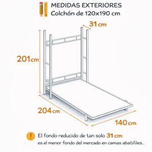 Para colchón: 120 x 190 cm
