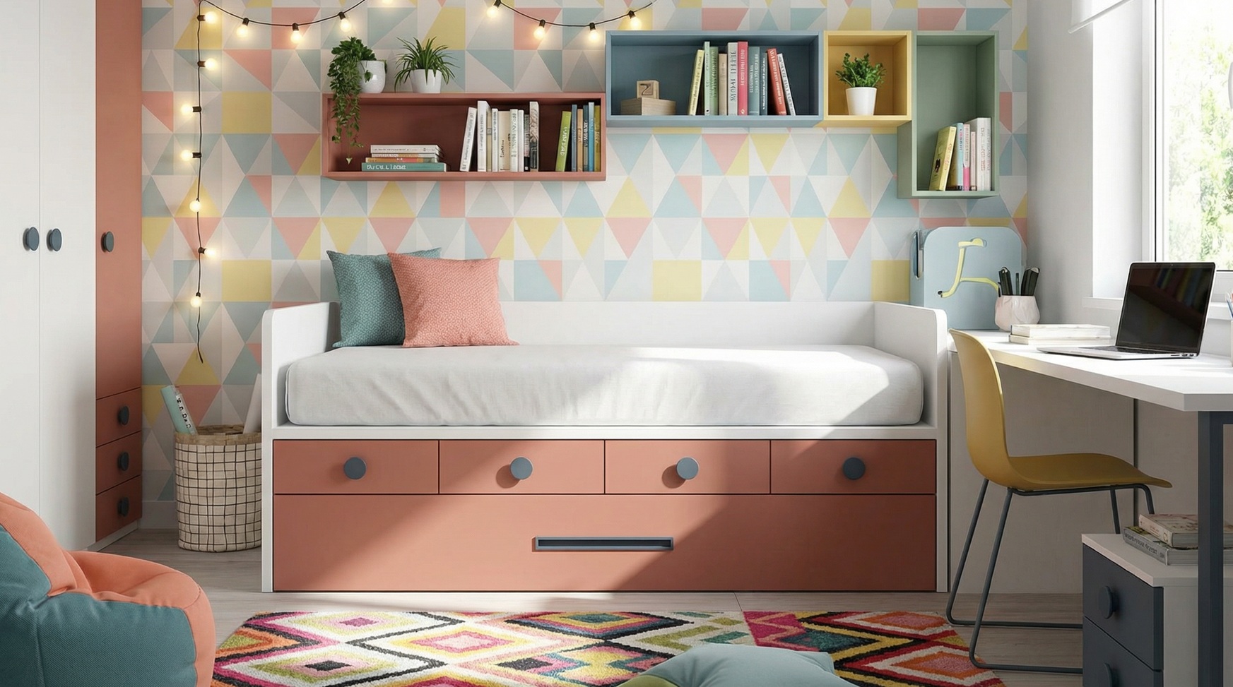 Cama compacta doble con cajones