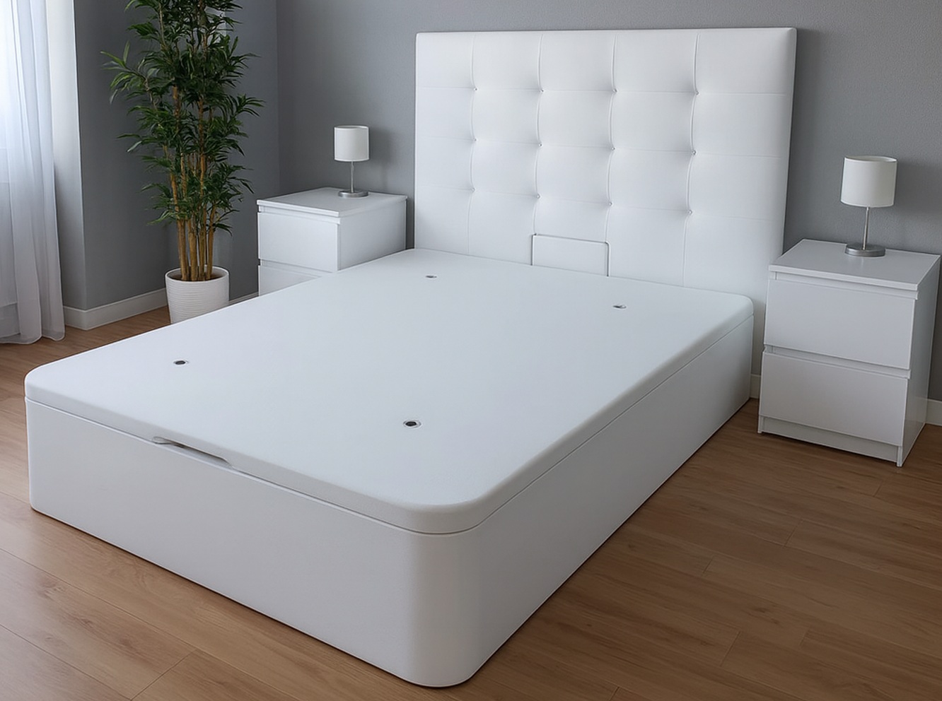 Canapé abatible de madera extra reforzado grosor de la estructura 2,2 (opción de 30mm de grosor +30€) y de gran capacidad con útil interior de 28 cms y altura total de 34 cms. Incorpora aireadores de ventilación en la tapa. Disponible en colores,blanco,artic,cambrian,cerezo,wengue y roble natural.Tapas en color blanco o beige.Otras medidas consultarnos