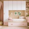 Dormitorio juvenil con altillo puente de 4 puertas de gran capacidad con refuerzo metálico,armarios laterales y cama nido con cajones.