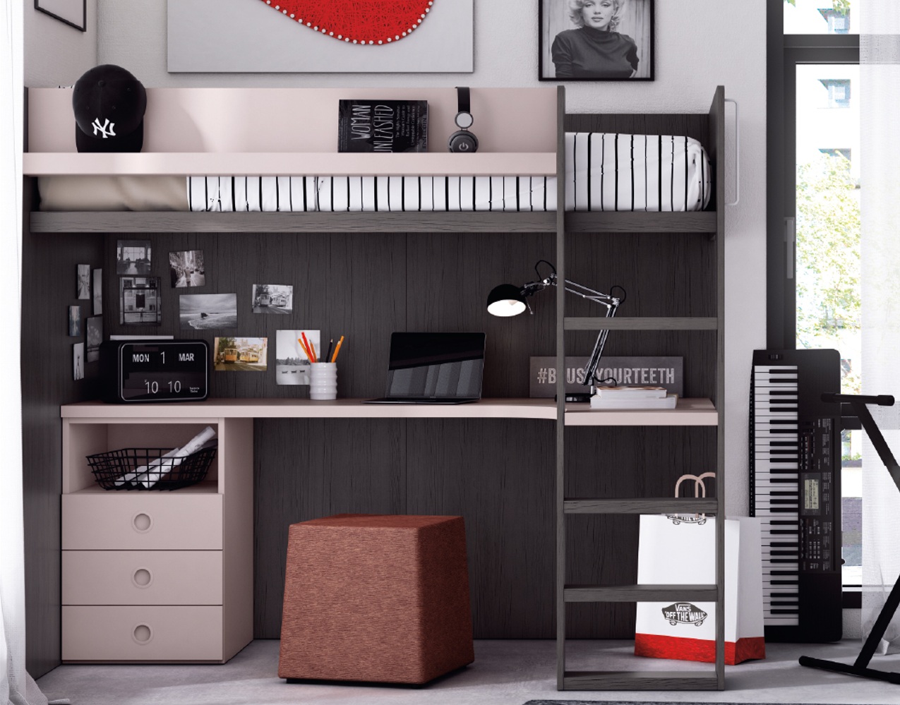 Litera alta con mesa estudio Elf.