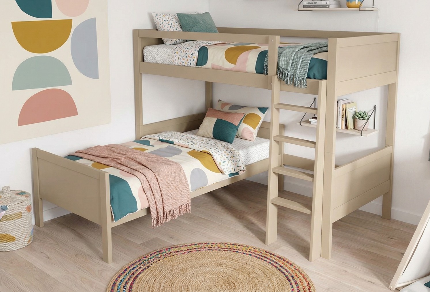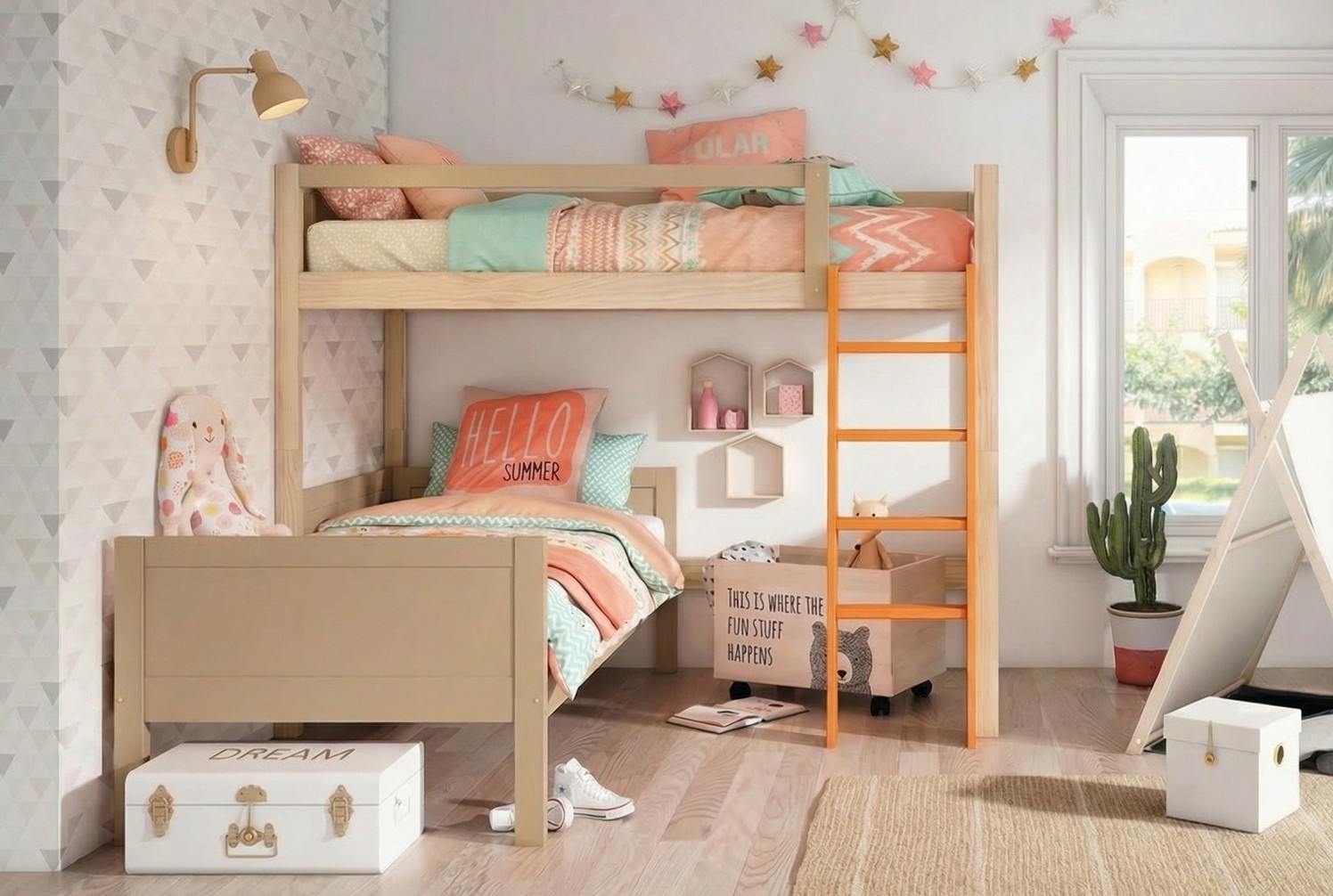 Descubre nuestra litera en L de madera maciza de alta calidad, ideal para dormitorios juveniles o infantiles. En Muebles de Tena (Badalona) ofrecemos soluciones resistentes, funcionales y con diseño moderno.