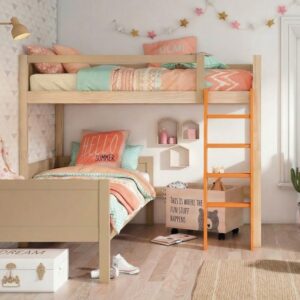 La litera Future en L de madera maciza es perfecta si buscas muebles juveniles en Badalona, combinando diseño, funcionalidad y calidad al mejor precio.