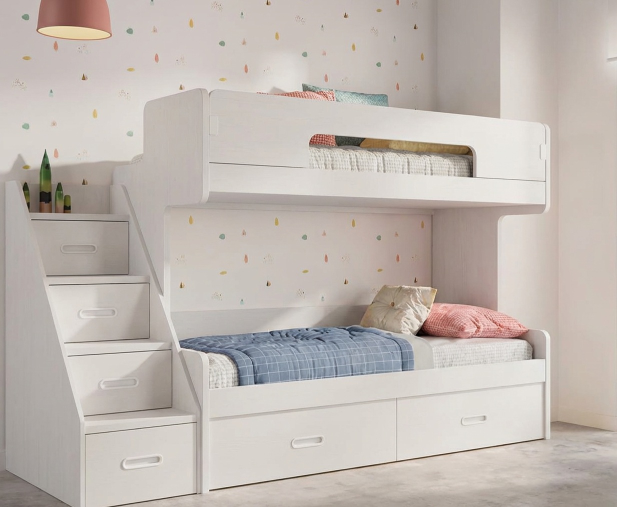 Litera de excelente calidad y acabados con gran seguridad, diferentes opciones de color a elegir. No precisa somieres, baranda y escalera incluidas en el precio.