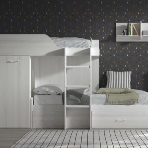 Litera tipo tren de excelente calidad y acabados,para colchones de 90×190 (no incluídos).Diferentes opciones de color y tirador,la cama inferior puede ir a derecha o a izquierda.Medida de ancho total 298.