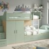 Composición juvenil con litera tren, armario de 2 puertas, módulo de 1 puerta, cama inferior con 2 cajones de gran capacidad,cajones con ruedas, escalera, módulo altillo de 1 puerta (trasera OPCIONAL de 1,5 cms para una protección de la pared). Producto de gama alta con un excelente acabado,puertas con bisagras anti golpes,cantos pvc. diferentes opciones de color a elegir.