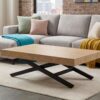 Mesa de centro muy práctica ya que es elevable,tiene doble hueco util y cajón, de diseño nórdico.Patas metálicas con imprimación epoxi.Diferentes opciones de color,altura 44/57