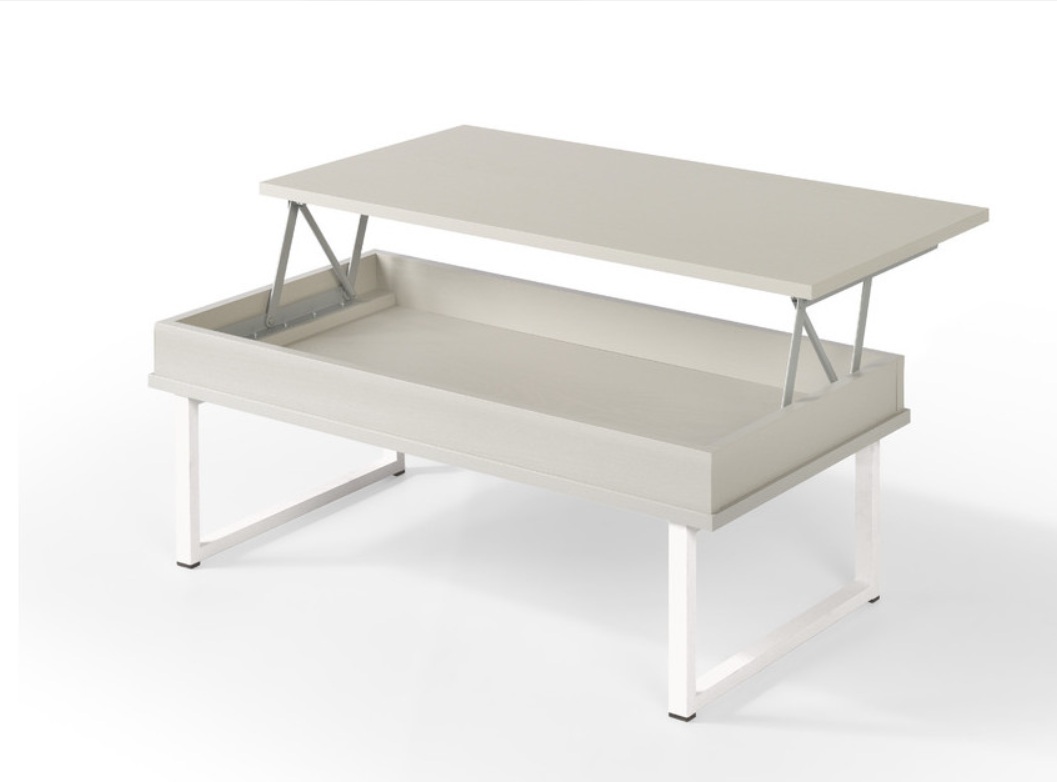 Mesa de centro elevable de excelente calidad y acabados, diferentes opciones de color a elegir . Patas metálicas en color blanco , negro,moka,cava,sable…etc.Parte superior en diferentes opciones de color (colores laminados +45€).