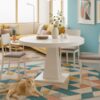 Mesa de comedor cuadrada de 90×90 ,con apertura tipo libro ,abierta 180×90,altura 76.