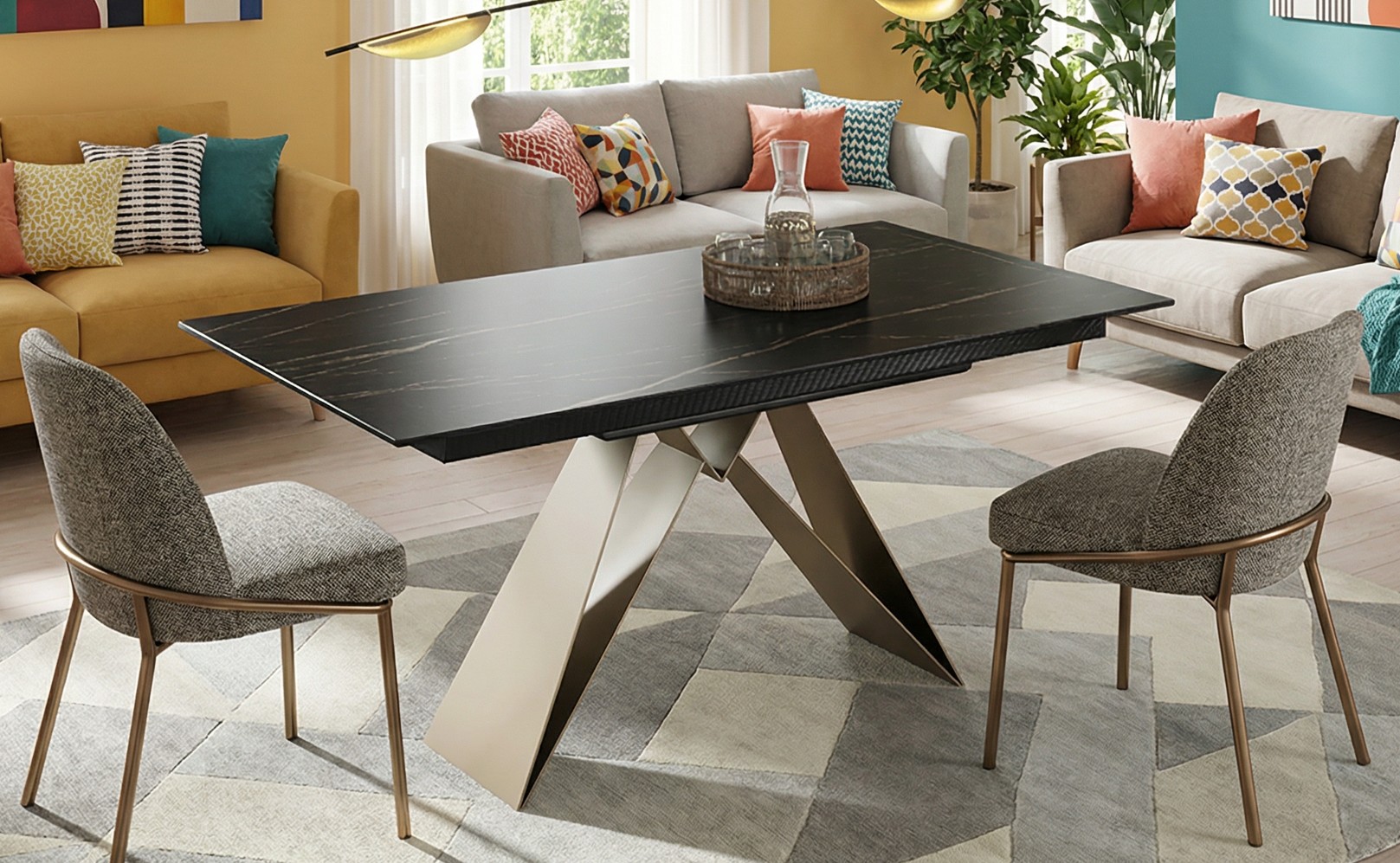 Mesa extensible sobre porcelanico