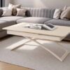Mesa modelo Arona con sistema de apertura extensible .En medida de 100×60 (100×60 abierta), opcional 110×70 (abierta 160×70) y 120×80 (abierta 180×80).