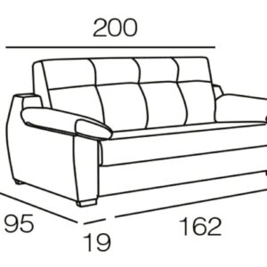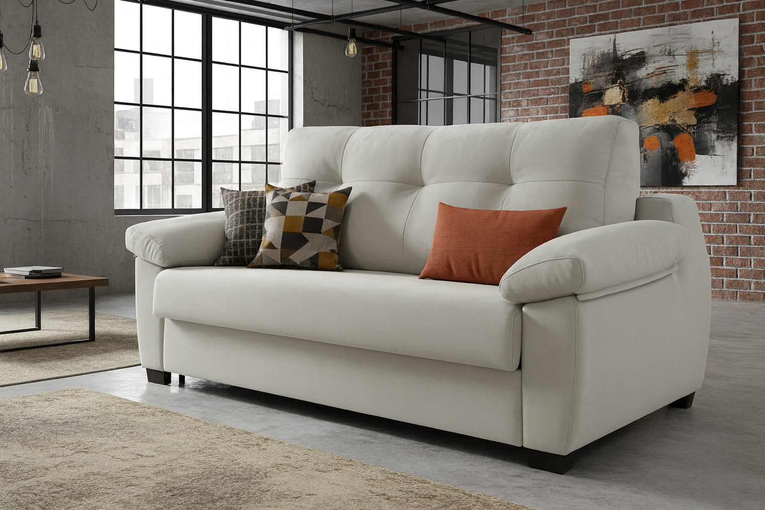 Sofá cama con sistema de apertura italiana,de excelente calidad y acabados,diferentes opciones de color y tapizado a elegir,cama de 140×190,ancho 200 cms. CON PRÁCTICOS BRAZOS ARCON.