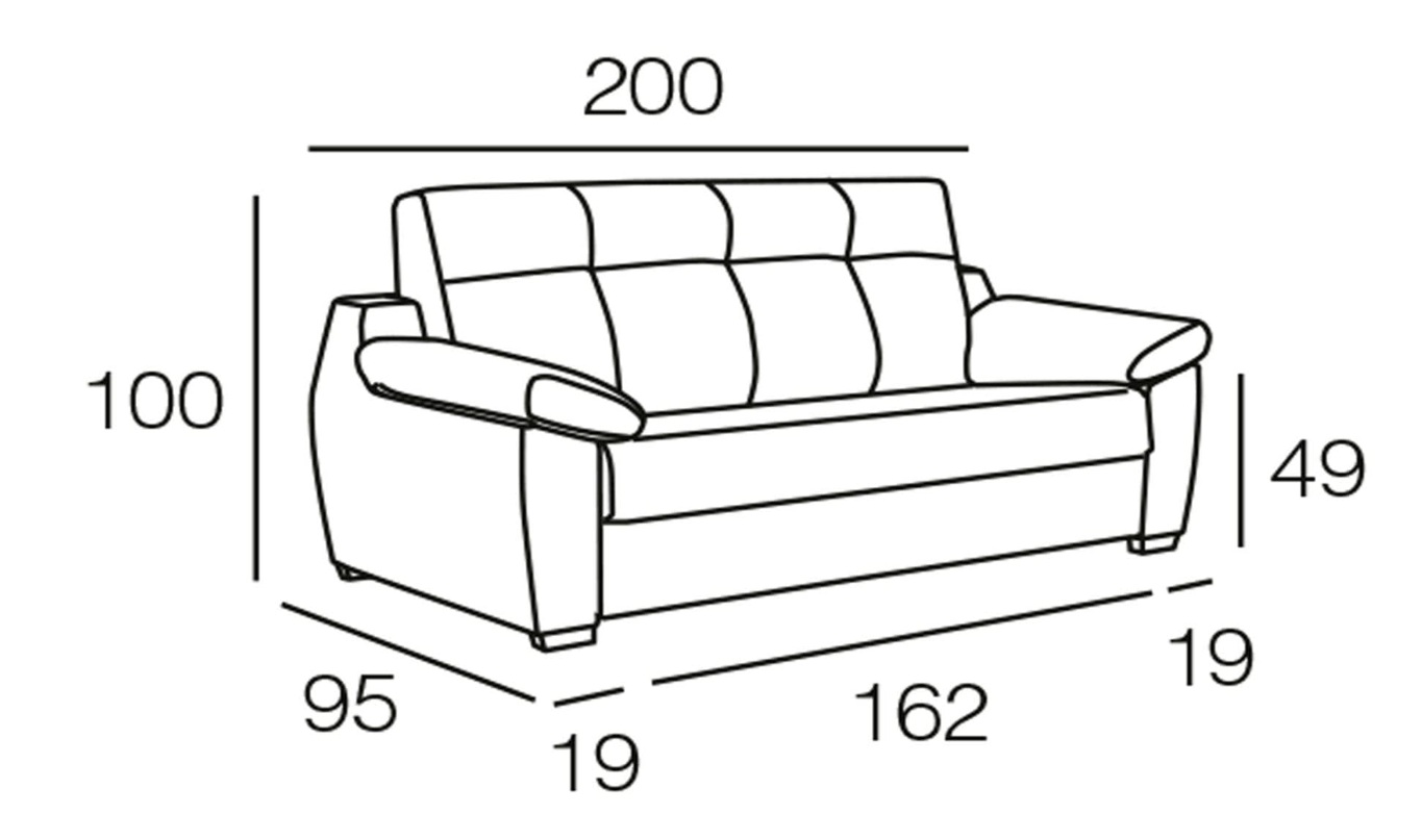 Medidas:200 de ancho,100 de alto,95 de fondo cerrado y 207 abierto.