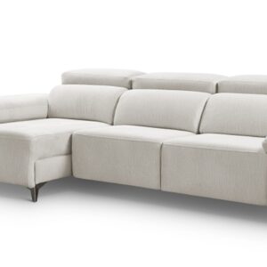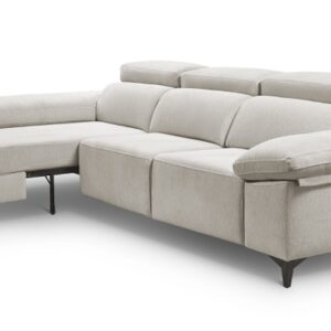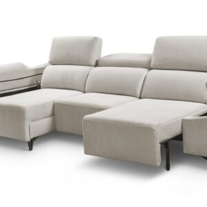 Sofá de gama alta con estructura de pino macizo y recubierto de fibra sens.Cabezales reclinables con multiposición sistema italiano con inclinaciones de 90-120 grados.Asientos deslizantes con apoyo al suelo.Chaise longue deslizante hasta 190 cms.