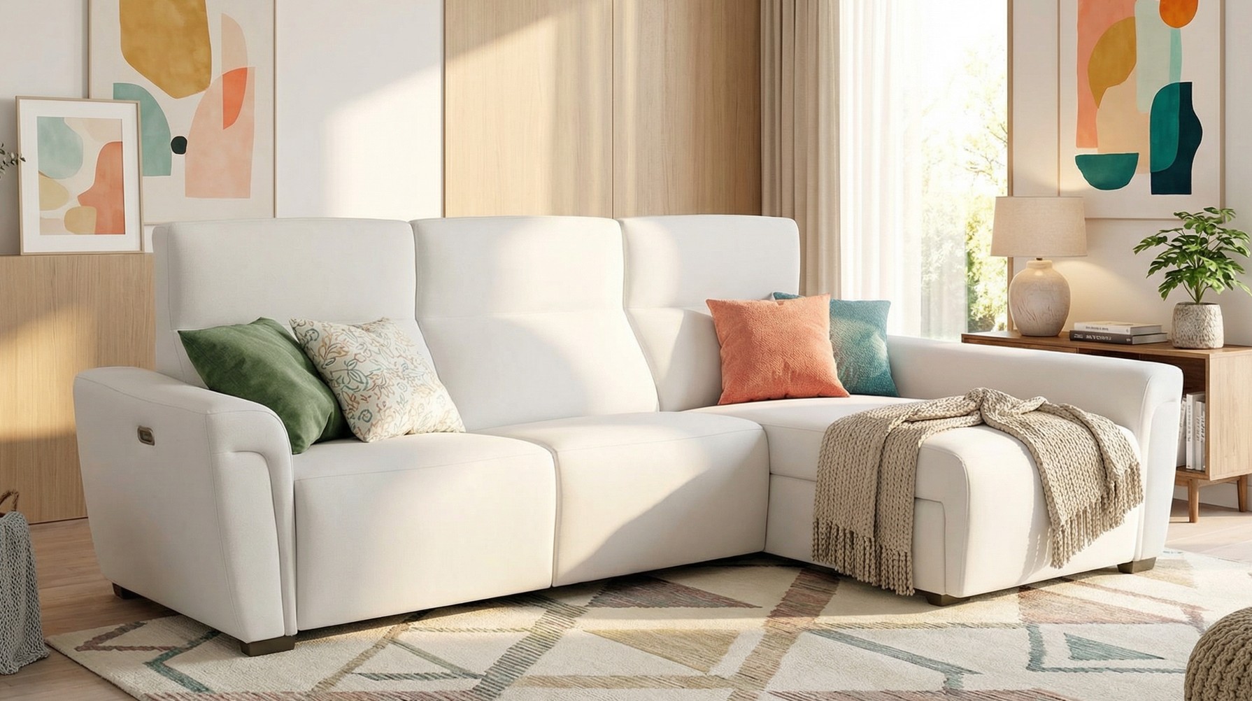 Tico nuevo sofá relax con fondo de 88 cm ideal para espacios reducidos,gran confort, con un diseño inteligente que optimiza el espacio sin sacrificar la comodidad.2 Plazas eléctricas y chaise abatible.Tapizados antimanchas.