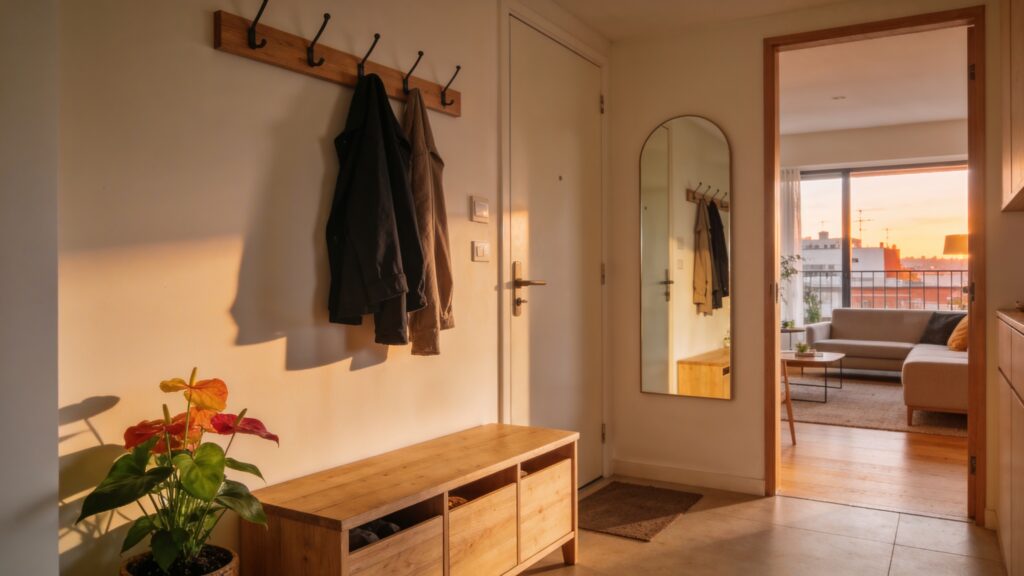 - También conviene evitar esas ideas muy vistosas en fotos que luego resultan incómodas en casa. Un asiento bonito pero inútil, un perchero saturado o una composición difícil de mantener pueden arruinar la experiencia diaria. En un recibidor pequeño, la estética funciona mejor cuando acompaña la rutina y no la complica.